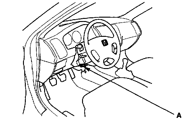 2. Connect the HDS or the Honda Interface Module (HIM) to the Data Link Connector (DLC) (A) located under the driver's side of dashboard.