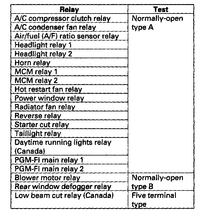 Use this chart to identify the type of relay, then do the test listed for it.