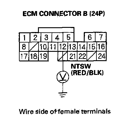 NO - Repair open in the wire between the ECM (B12) and the neutral position switch.