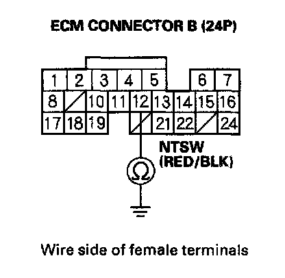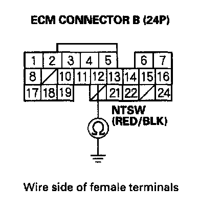 13. Check for continuity between ECM connector terminal B12 and body ground.