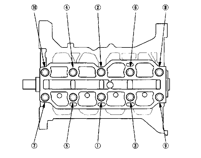 Tighten the bearing cap bridge bolts in sequence to 25 Nm (2.5 kgf-m, 18 ft. lbs.)