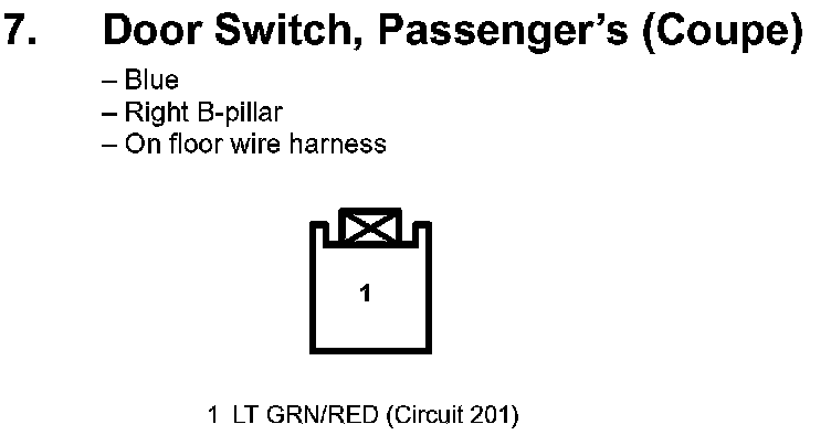 7. Door Switch, Passenger's (Coupe):