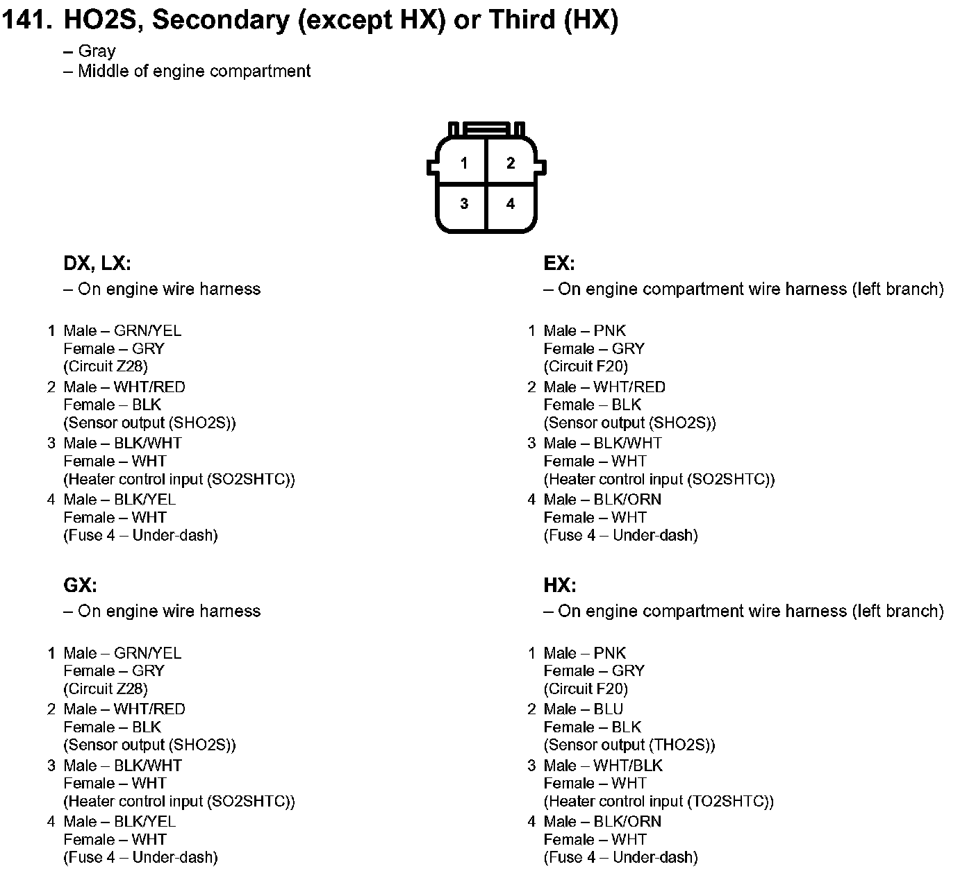 140. HO2S, Primary (GX; '01-'03: EX, DX, LX) Or Secondary (HX):