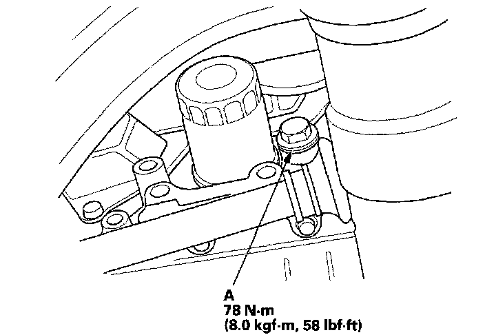 6. Remove the drain bolt (A) from the rear of the cylinder block.