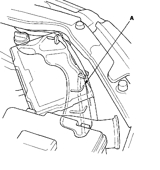 9. Remove, drain and reinstall the reservoir. Fill the tank to the MAX mark (A) with Honda All Season Antifreeze/Coolant Type 2.