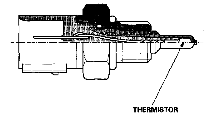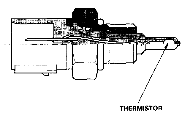 The fuel temperature sensor is on the fuel rail. It measures the temperature of the fuel. Its signal is used to correct the fuel injection period according to fuel temperature.