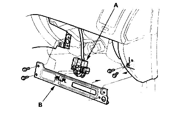 4. Remove the relays (A), then remove the bolts and the glove box frame (B).