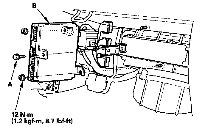 6. Remove the nuts, then remove the PCM (B).