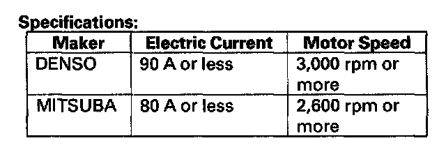 8. If the electric current and motor speed meet the specifications when the battery voltage is at 11.5 V, the starter is working properly.