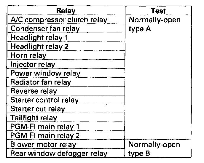 Use this chart to identify the type of relay, then do the test listed for it.