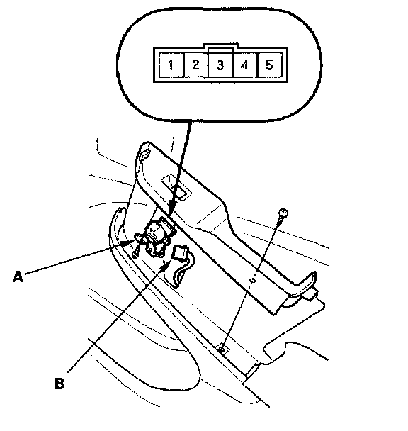 1. Remove the screw and passenger's power window switch (A) from the door panel.