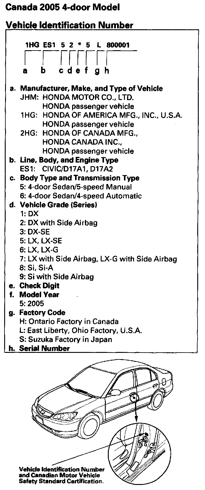 Vehicle Identification Number, Canada 2005 4-door Model: