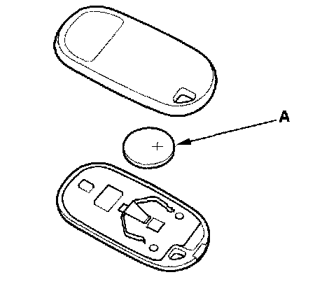 3. Replace the transmitter battery (A) with a new one, and try to lock and unlock the doors with the transmitter by pressing the lock or unlock button 5 or 6 times.