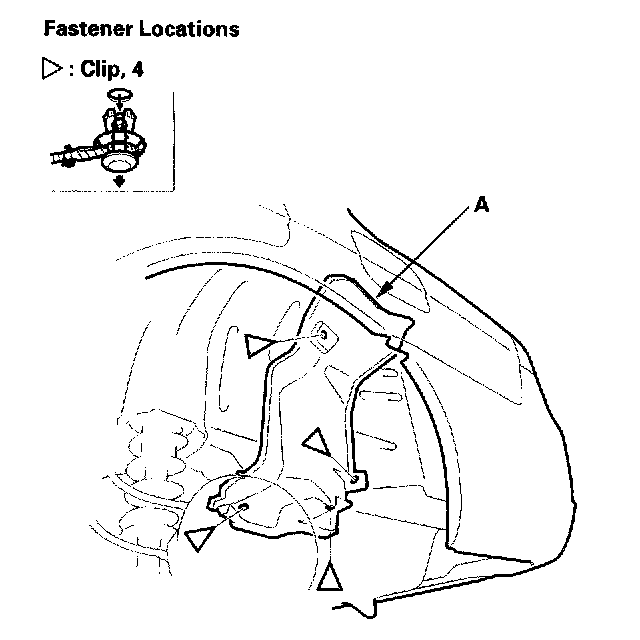 1. Remove the clips, then remove the fuel pipe protector (A). Take care not to scratch the body.