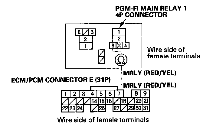 NO - Repair open in the wire between PGM-FI main relay 1 and the ECM/PCM (E7).
