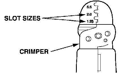 4. Position the terminal in the crimping tool slot with the solid portion of the terminal toward the anvil and the open section toward the former.