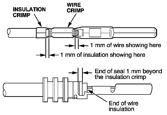 - If you do not have a wire seal, then use the next larger size crimp slot. Position the crimping tool over the insulation crimp section of the terminal, then squeeze the tool with both hands until the stops make contact.