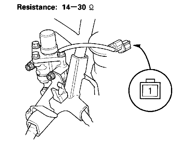 3. Measure resistance between the VTEC solenoid valve 1P connector terminal No.1 and body ground.