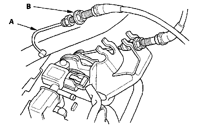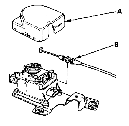 3. Remove the actuator cover (A), then remove the actuator cable (B) from the cruise control actuator.