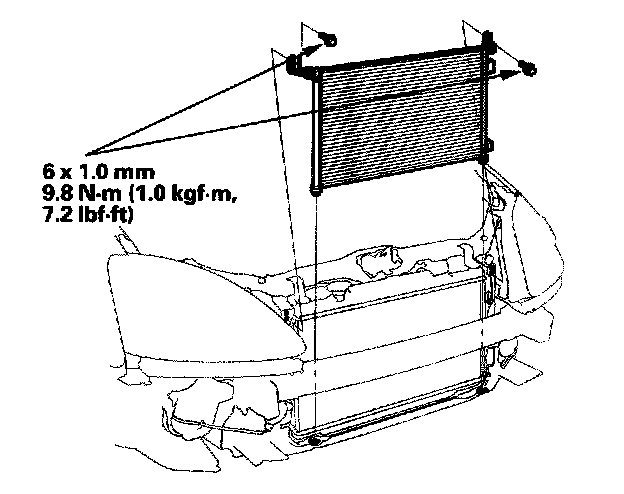 - Be careful not to damage the radiator or the A/C condenser fins when installing the A/C condenser.