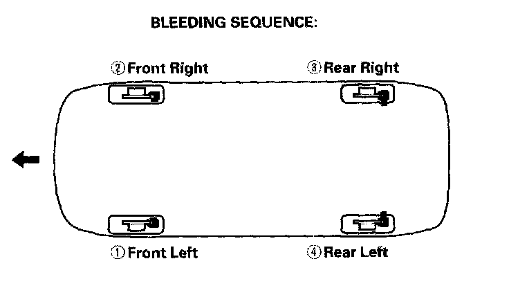 5. Repeat the procedure for each wheel in the sequence shown following until air bubbles no longer appear in the fluid.