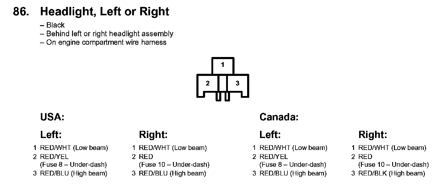86. Headlight, Left Or Right: