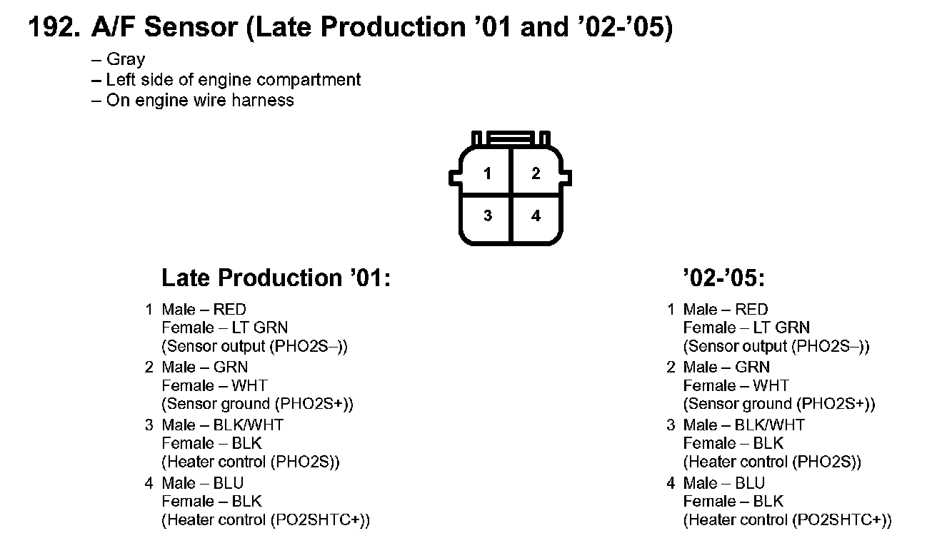 192. A/F Sensor (Late Production '01 And '02-'05):
