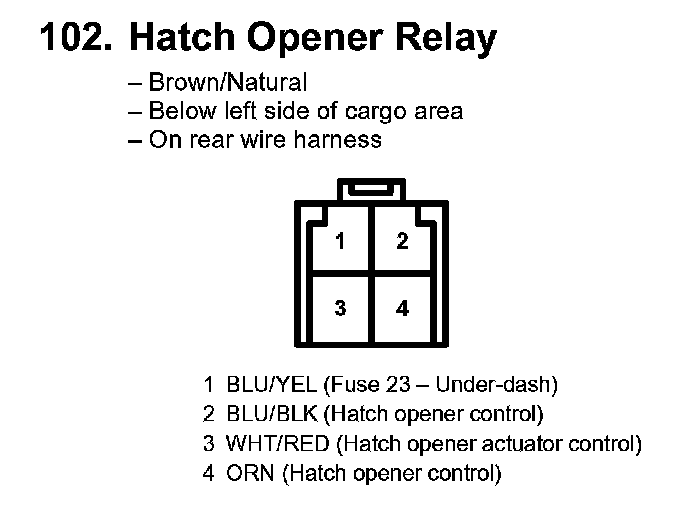 102. Hatch Opener Relay: