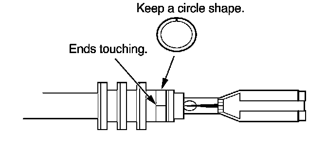 3. Strip the insulation off the end of the wire so the wire fits in the new terminal as shown. (If the wire has a wire seal, replace it with a new one from the kit.)