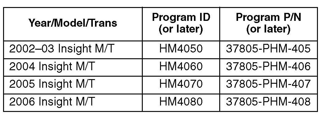 1. Update the PGM-FI software. Refer to Service Bulletin 01-023, Updating Control Units/Modules.
