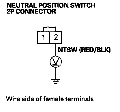 15. At the sensor side, check for continuity between neutral position switch 2P connector terminals No.1 and No.2 with the transmission in 1st gear.