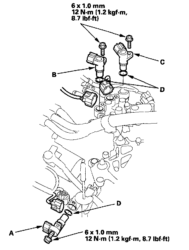 3. Replace the O-rings (D) with new ones before installing the speed sensors.