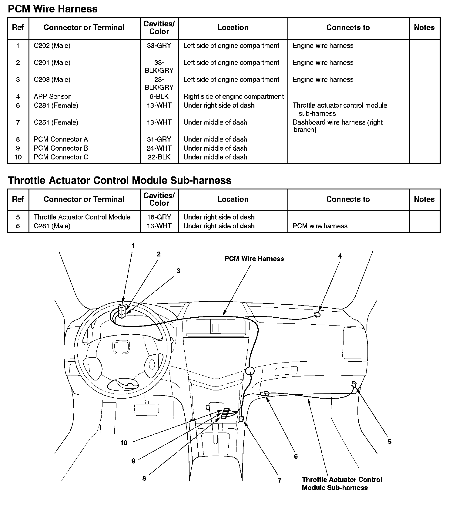 PCM Wire Harness/Throttle Actuator Control Module Sub-harness: