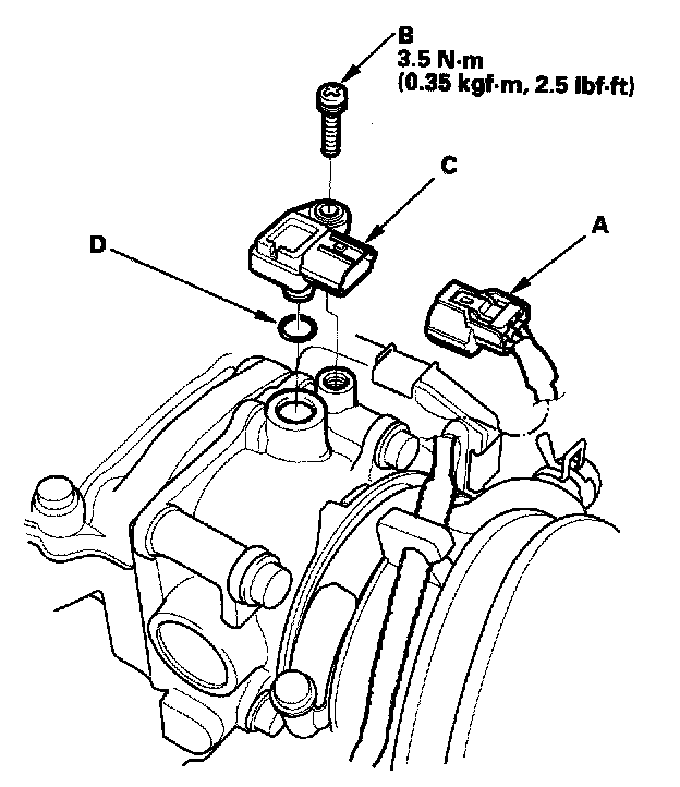 5. Install the sensor in the reverse order of removal with a new O-ring (D).