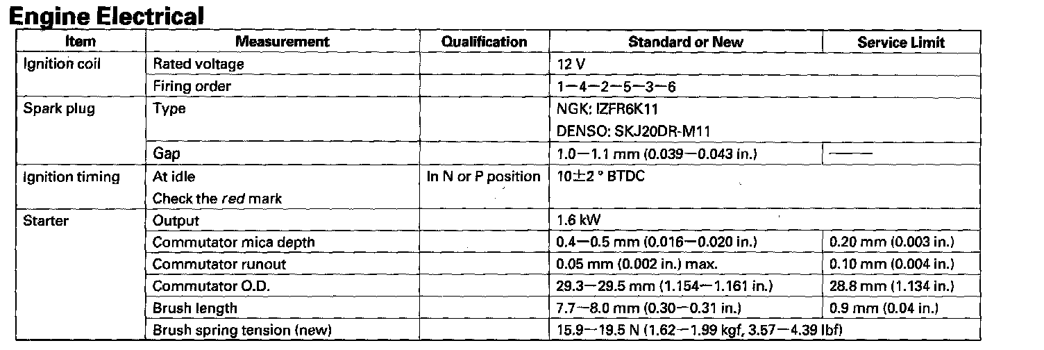 Engine Electrical - Standards And Service Limits: