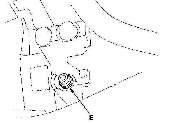 25. Press the accelerator pedal very slowly so that the engine speed increases to 2,000 rpm on 5 seconds, then hold the accelerator; the transmission shifts into 3rd gear. Measure the 3rd clutch pressure at the 3rd clutch pressure inspection port (E) while holding the engine speed at 2,000 rpm.