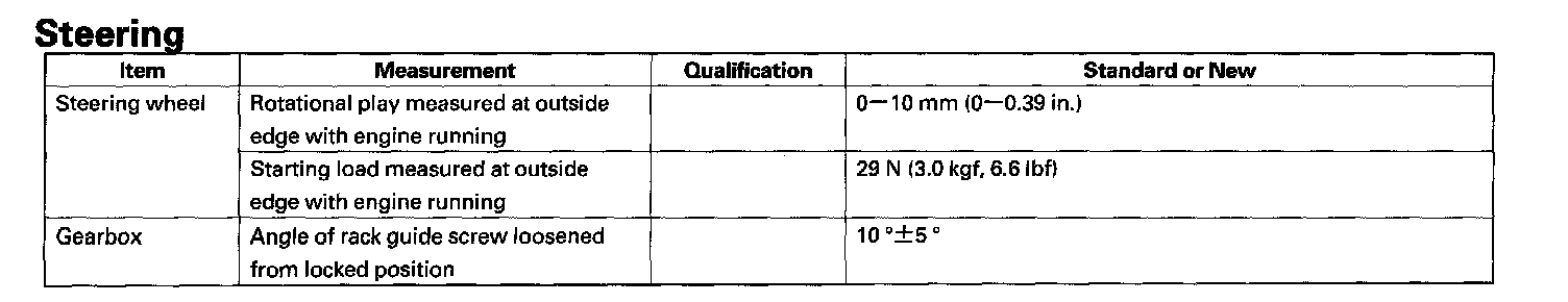 Steering - Standards And Service Limits:
