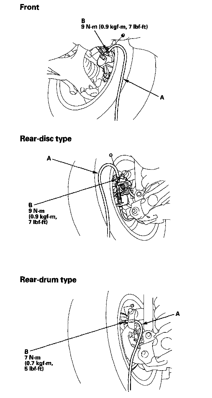 4. Attach a length of clear drain tube (A) to the bleed screw (B), then, loosen the bleed screw to allow air to escape from the system. Then tighten the bleed screw securely.