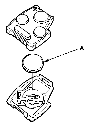 3. Replace the transmitter battery (A) with a new one, and try to lock and unlock the doors with the transmitter by pressing the lock or unlock button five or six times.