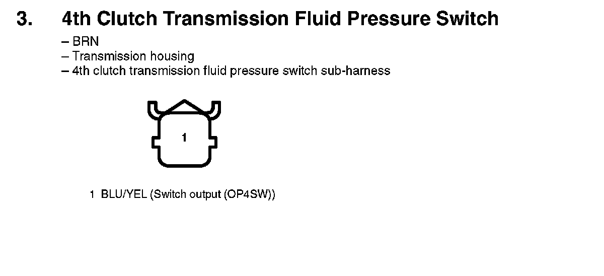 3. 4th Clutch Transmission Fluid Pressure Switch: