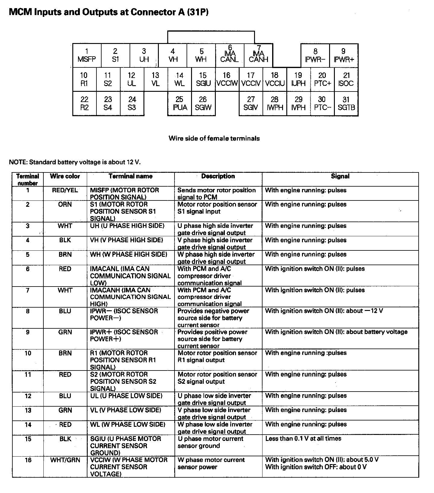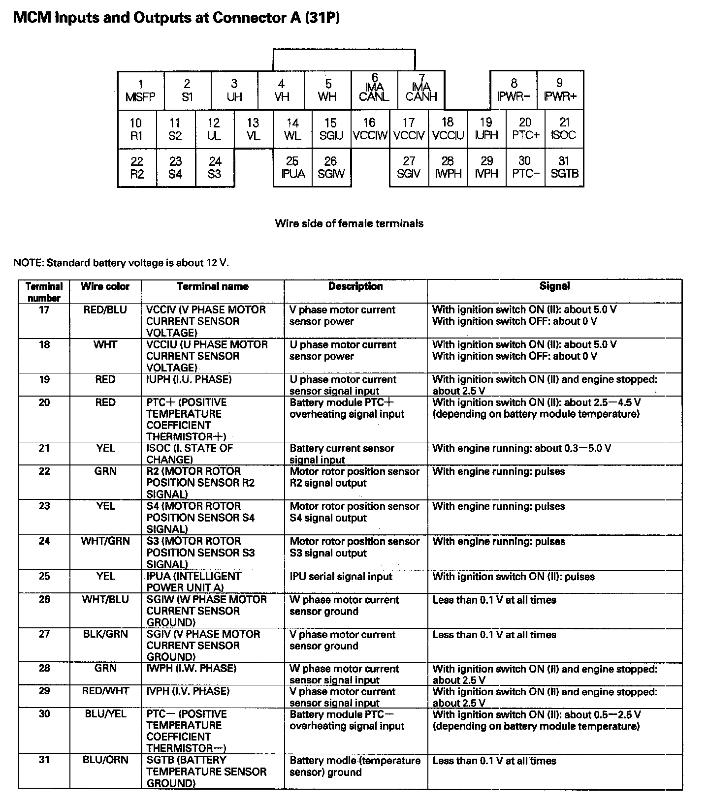 MCM Inputs And Outputs At Connector A (31P) Part 2: