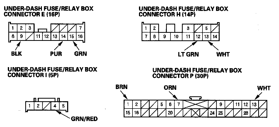 7. Turn the ignition switch to ON (II) to keep the system awake and make these input tests at the appropriate connectors on the under-dash fuse/relay box.
