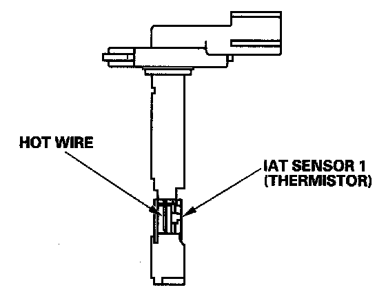 The MAF sensor/IAT sensor 1 contains a hot wire and a thermistor. It is located in the intake air passage. The resistance of the hot wire and thermistor change due to intake air temperature and air flow. The control circuit in the MAF sensor controls the current to keep the hot wire at a set temperature. The current is converted to voltage in the control circuit, then output to the PCM.