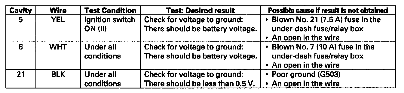 5. Disconnect the connector from the gauge control module, and make these input tests at the connector.