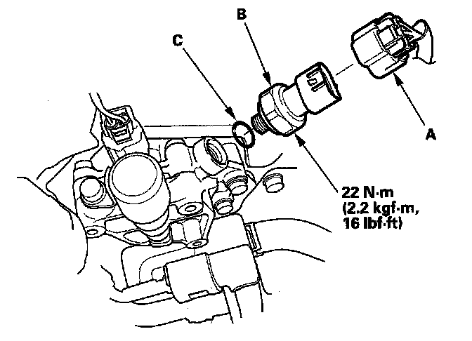 4. Install the parts in the reverse order of removal with a new O-ring (C).