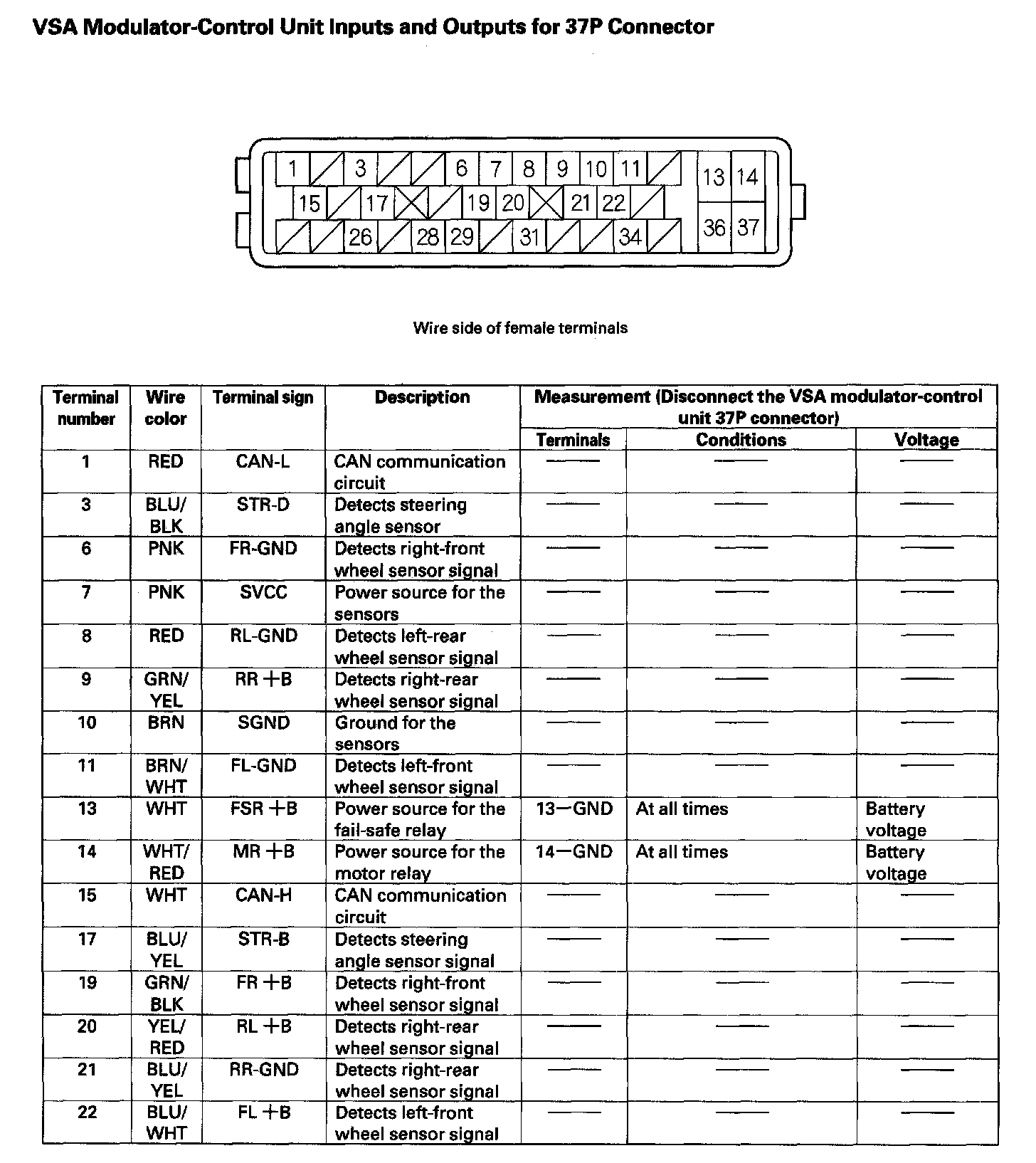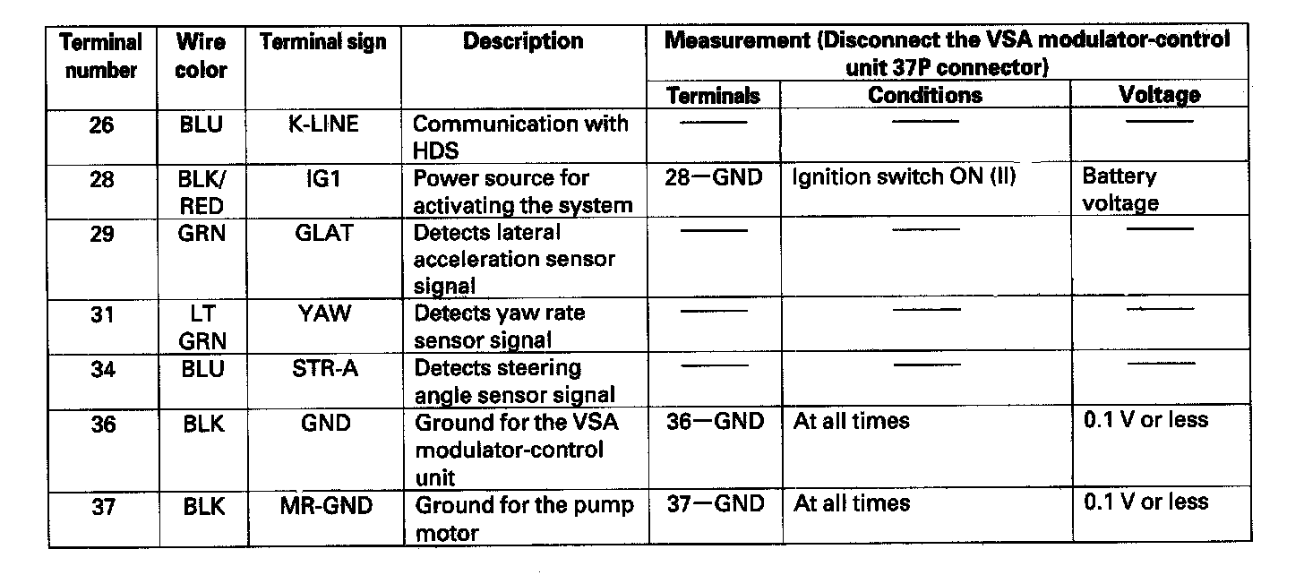 VSA Modulator-Control Unit Inputs and Outputs for 37P Connector (Part 1):
