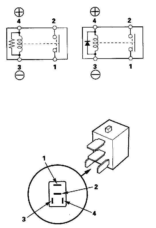 - There should be continuity between the No.1 and No.2 terminals when battery positive terminal is connected to the No.4 terminal, and battery negative terminal is connected to the No.3 terminal.