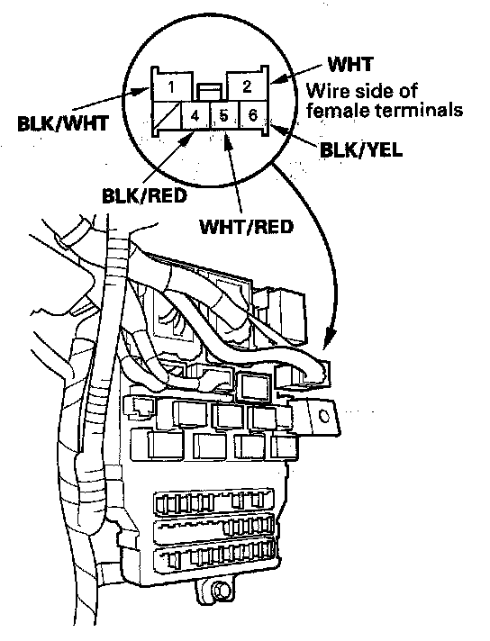 6. Disconnect the 6P connector from the under-dash fuse/relay box.