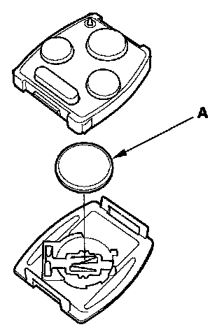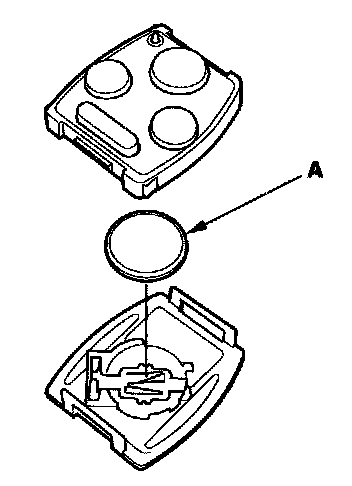 4. Replace the transmitter battery (A) with a new one, and try to lock and unlock the doors with the transmitter by pressing the lock or unlock button five or six times.