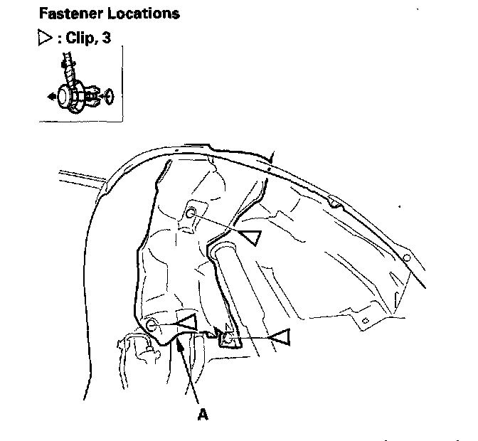 2. Remove the clips, then remove the fuel pipe protector (A).